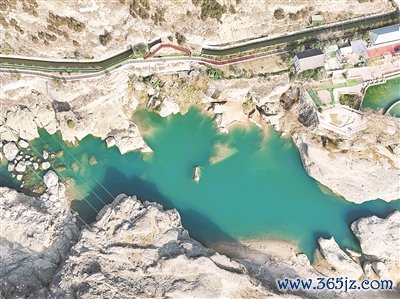 12月25日,礼泉县烟霞镇湾里村,碧绿的水潭镶嵌于天然峡谷之中,峭壁乱石与如镜水面相互映衬,蓝绿色的潭水与嶙峋岩壁相映成趣,被游客赞为“水上雅丹”,又有人称之为陕西版“乌孙古道”。