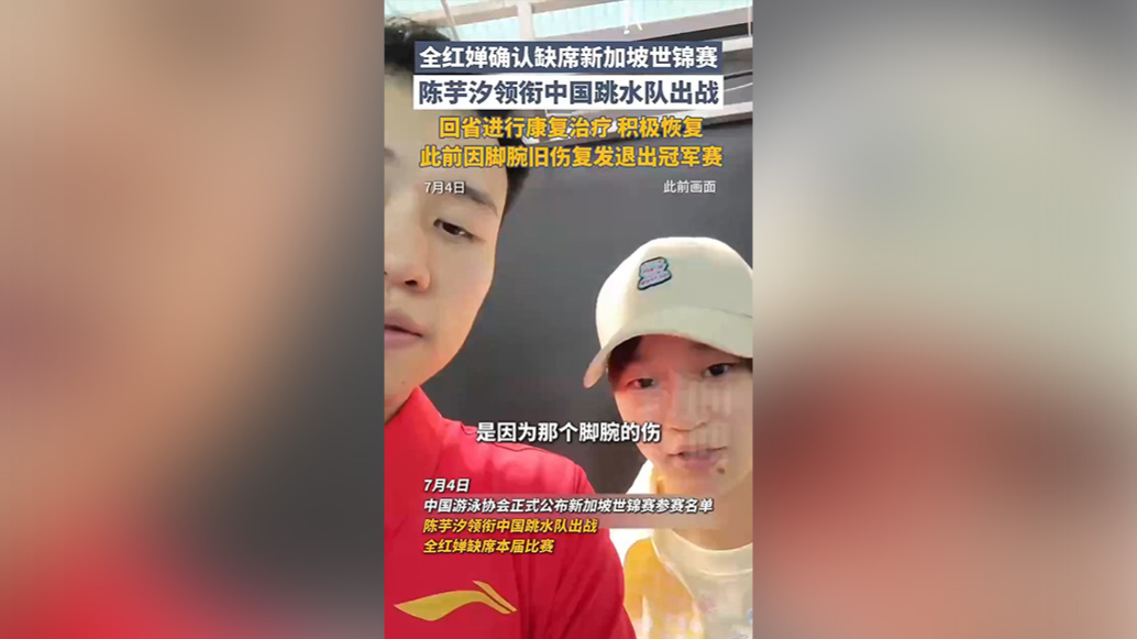 今年5月在武汉进行的全国跳水冠军赛,全红婵当时已随队抵达武汉,但因旧伤复发而选择退赛。