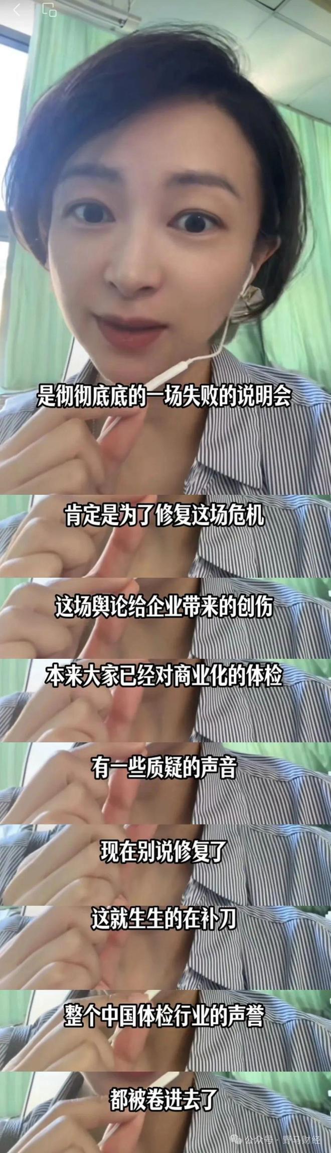 自媒体博主"我想静静了"认为,发布会的初衷肯定是为了修复这场危机,这场舆论给企业带来的创伤,本来大家已经对商业化的体检有一些质疑的声音,现在别说修复了,这就是生生的在补刀。整个中国体检行业的声誉,都被卷进去了。